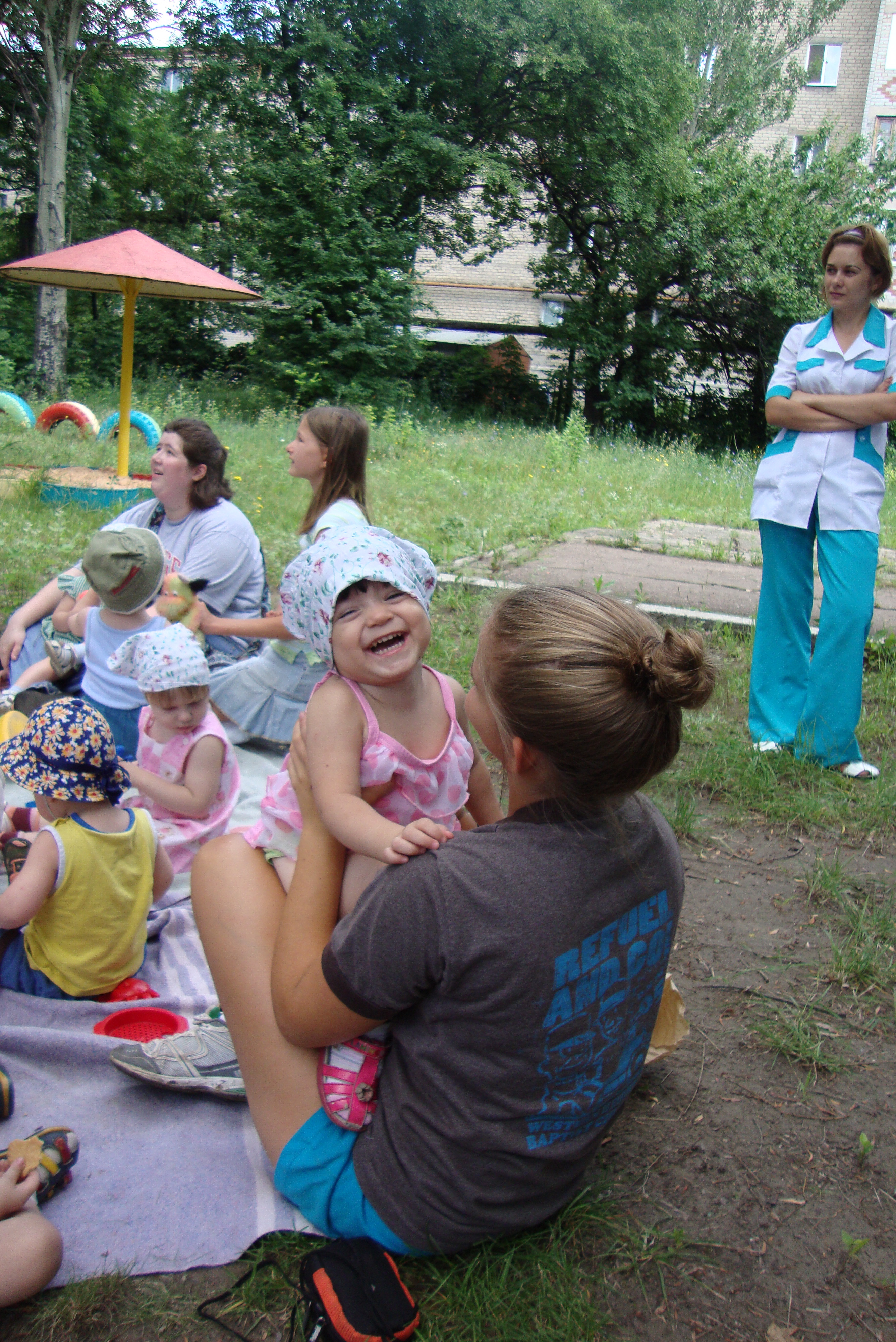 Angelina gets this little girl laughing.