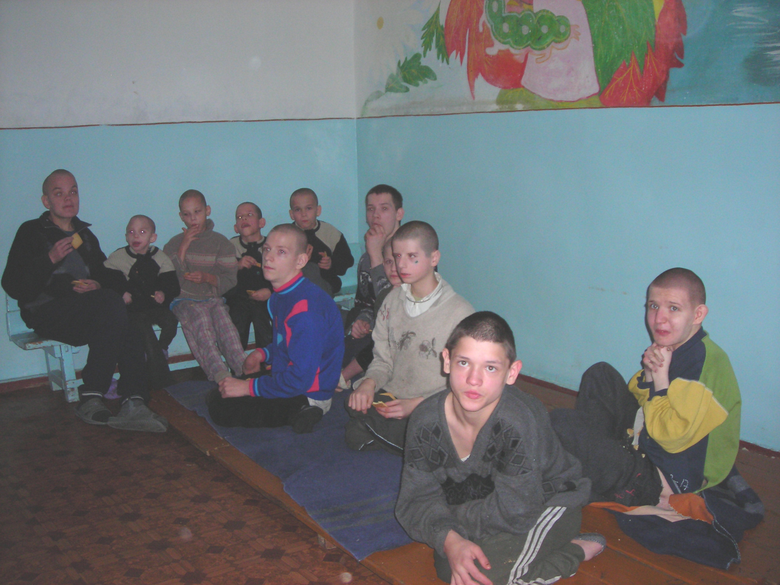 During cookie distribution, 6-7 boys 'rushed' the box of cookies shoving as many as possible into their mouths and pockets.