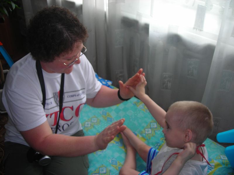 Darlene plays a game with this child, but a staff member came and told her to 'stop' and laid the child back down.